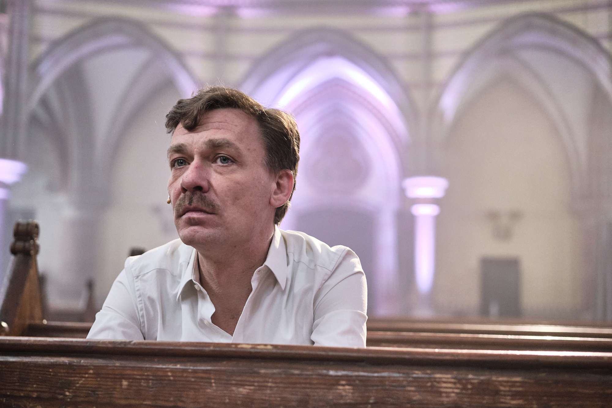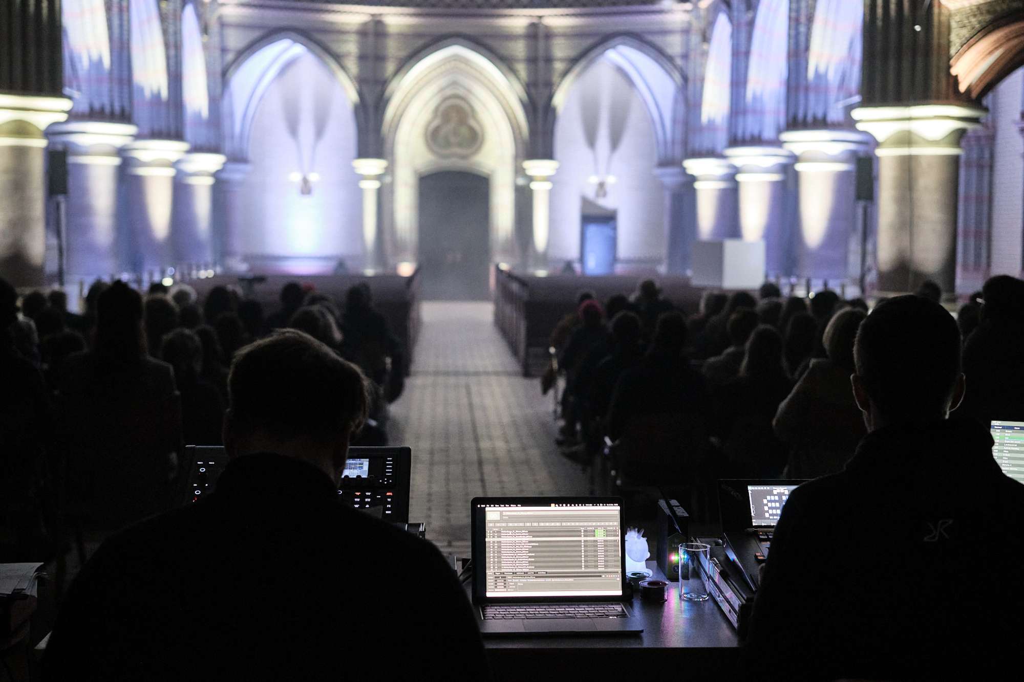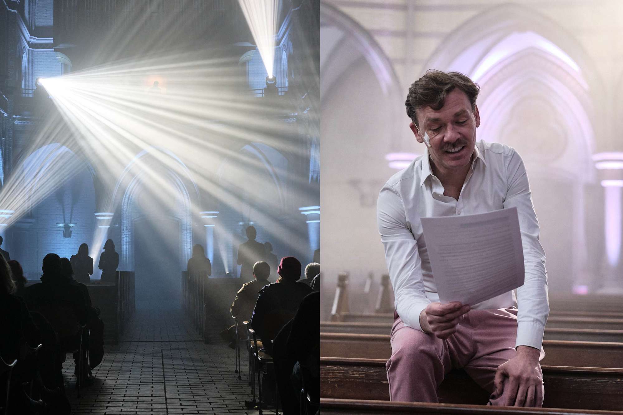 Begleitet von Chor- und Orgelmusik sowie Licht- und Videoelementen entsteht eine immersive Erfahrung, in der die Schatten der europäischen Vergangenheit in unserer jetzigen Zeit greifbar werden.